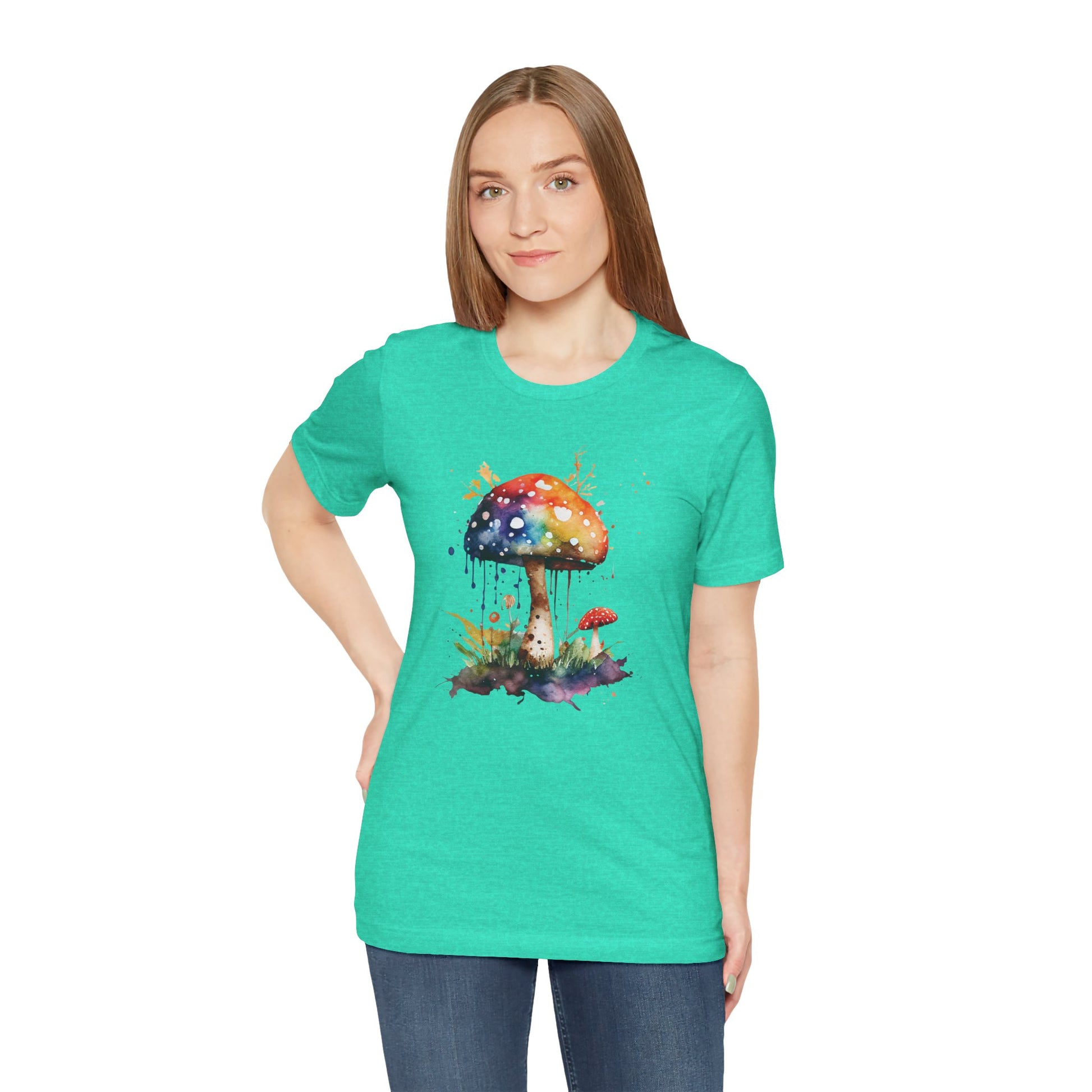 Introducing a vibrant and artistic Unisex Jersey Short Sleeve Tee that adds a splash of color to any wardrobe! Featuring a stunning watercolor mushroom design, this tee nurtures creativity and whimsy, perfect for nature lovers and artistic souls. Ideal for casual outings, festivals, or cozy days at home, this shirt evokes a laid-back, cheerful atmosphere that's sure to bring a smile. It makes a thoughtful gift for birthdays, Earth Day celebrations, or just because! Perfect for those seeking comfort without compromising on style, this tee fits seamlessly into the lifestyles of free spirits and adventurers.