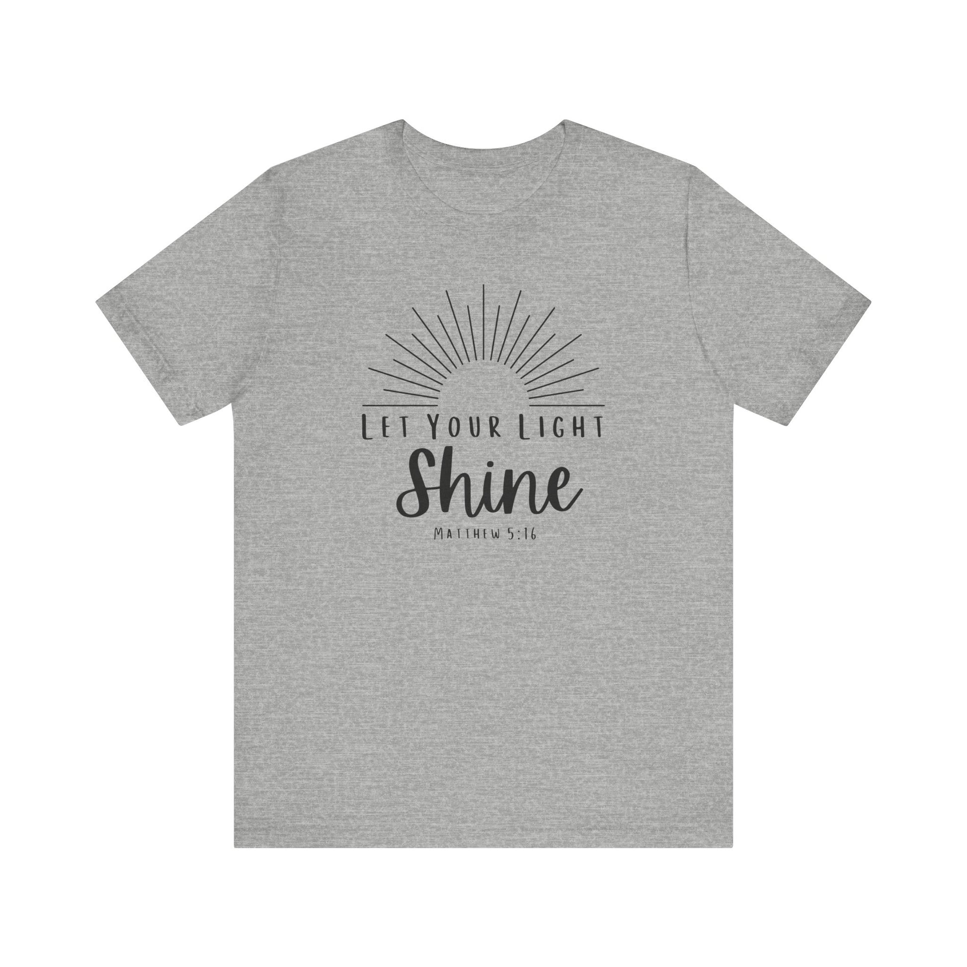 Introducing a stylish Unisex Jersey Short Sleeve Tee that radiates positivity and warmth. This lightweight tee features a beautiful design that encourages self-expression and a sense of community. Its relaxed fit and soft fabric make it perfect for casual outings, family gatherings, or even a cozy night at home. Ideal for individuals who appreciate comfort and meaningful messages, this tee resonates especially with those celebrating faith, uplifting vibes, or simply seeking a fresh, versatile wardrobe staple. Perfect for gifting on occasions like birthdays, holidays, or religious celebrations, it’s a thoughtful reminder to ‘Let Your Light Shine’ in every setting.