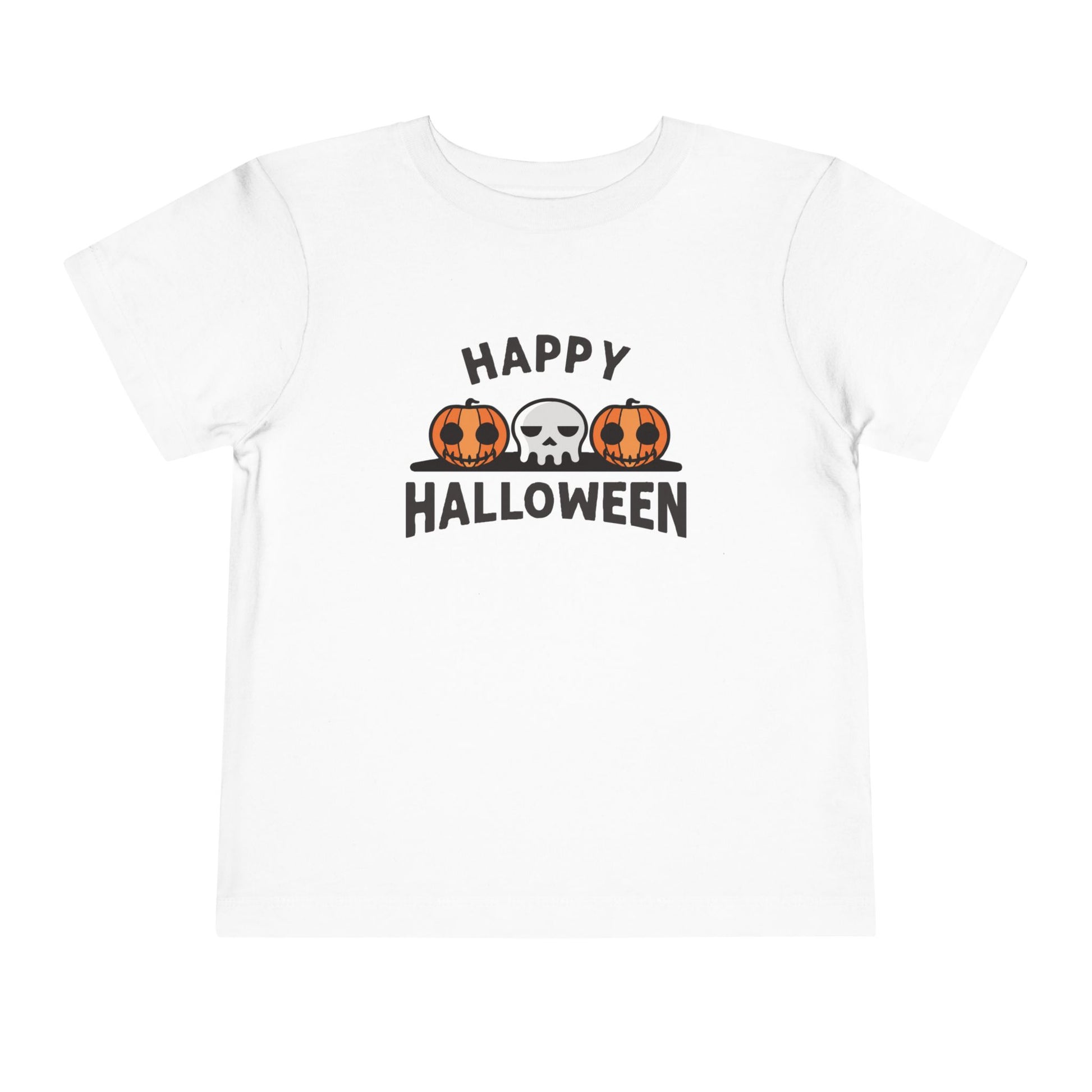 Celebrate the fun and spooky season with this adorable Toddler Short Sleeve Tee featuring a cheerful 'Happy Halloween' design adorned with cute pumpkins and a playful skull. This lightweight and soft tee is perfect for little ones who enjoy dressing up for festivities or simply want to join in on the seasonal celebrations. It's ideal for Halloween parties, trick-or-treating, or just adding a fun touch to their everyday wardrobe. Crafted from high-quality materials, it ensures comfort and durability for all their adventures. A wonderful gift for parents looking to add some festive flair to their child's clothing collection, this tee is not only great for Halloween but can also be a delightful addition to other occasions like fall-themed gatherings or family outings in autumn.